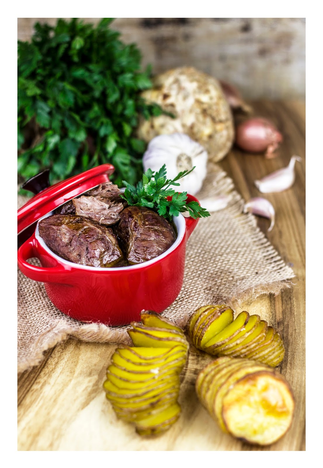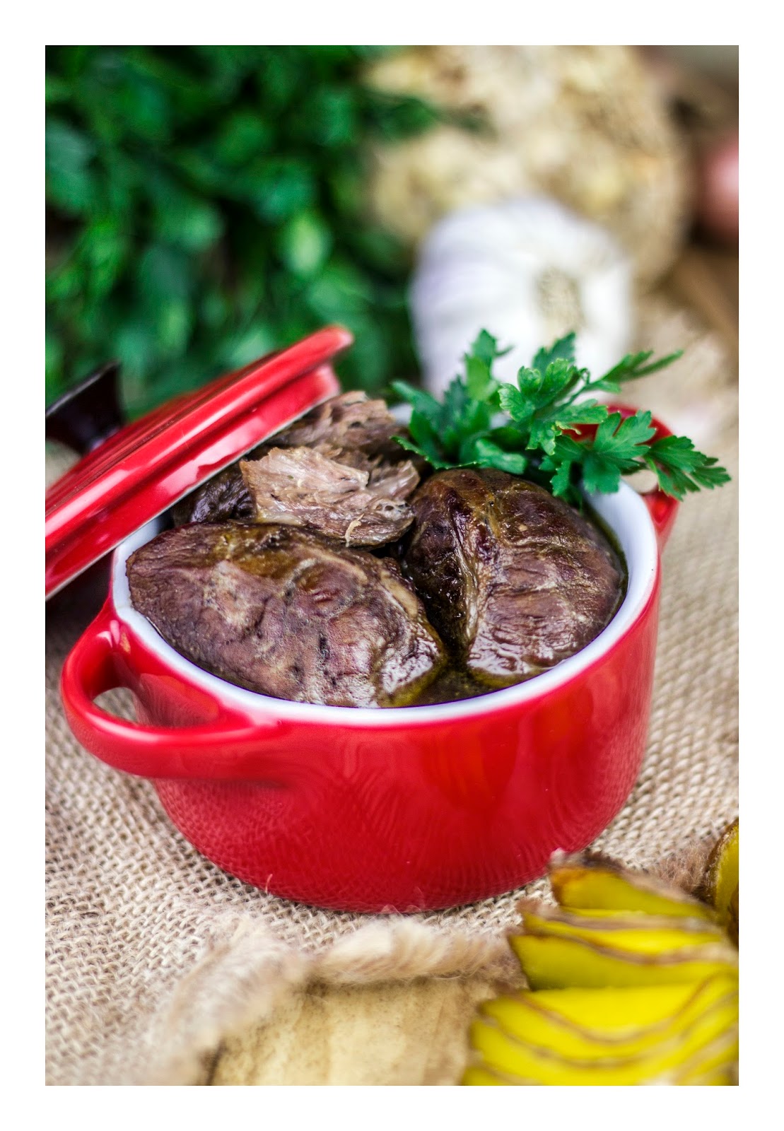 5. Mięso pieczemy przez 4 godziny w piekarniku nagrzanym do 160 stopni, podlewając piwem, kiedy płyn odparuje. * w razie potrzeby, gdyby piwo było gorzkie, dodajemy stopniowo syrop klonowy.