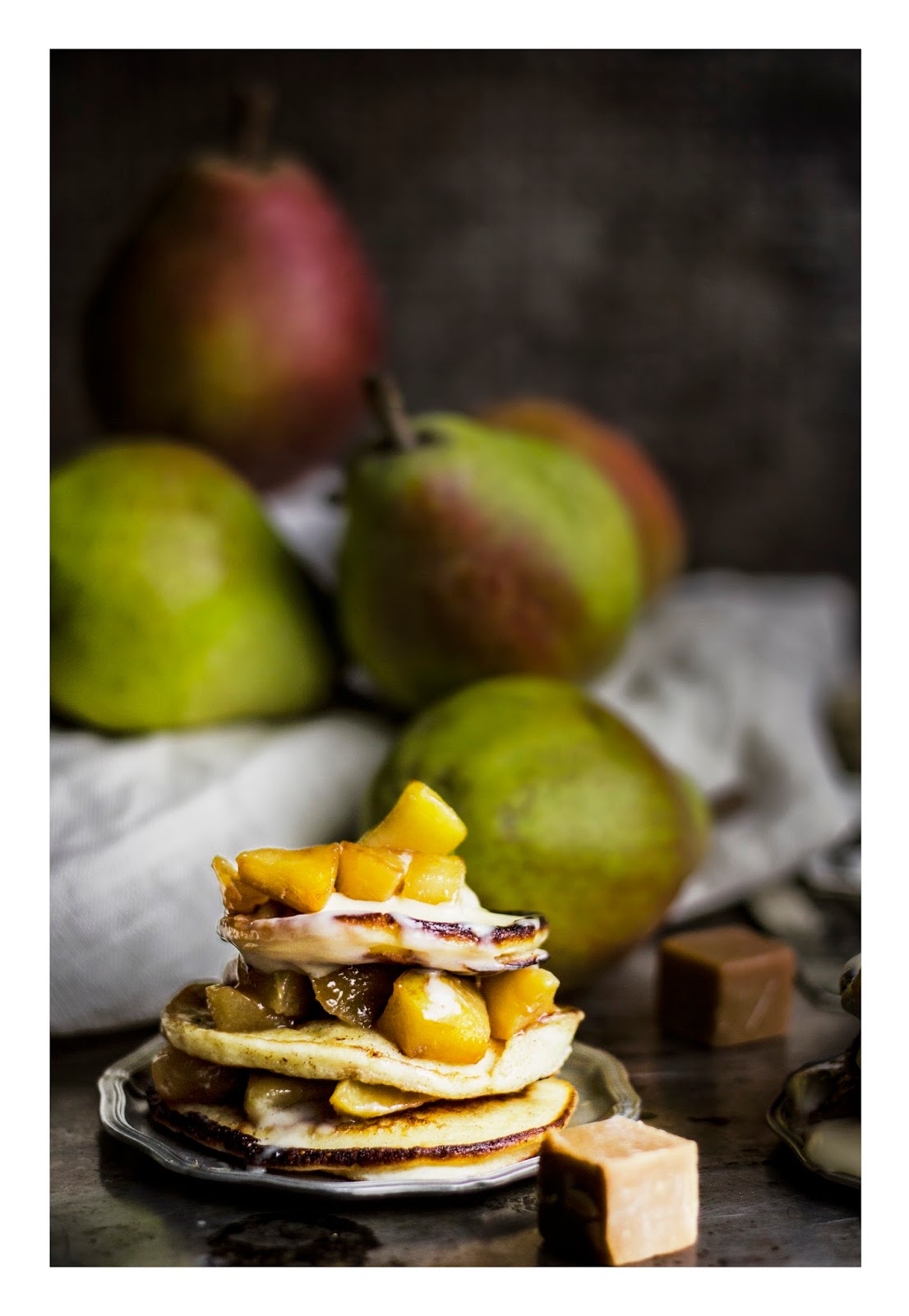 Racuszki z ricottą, gruszkami i sosem z białej czekolady