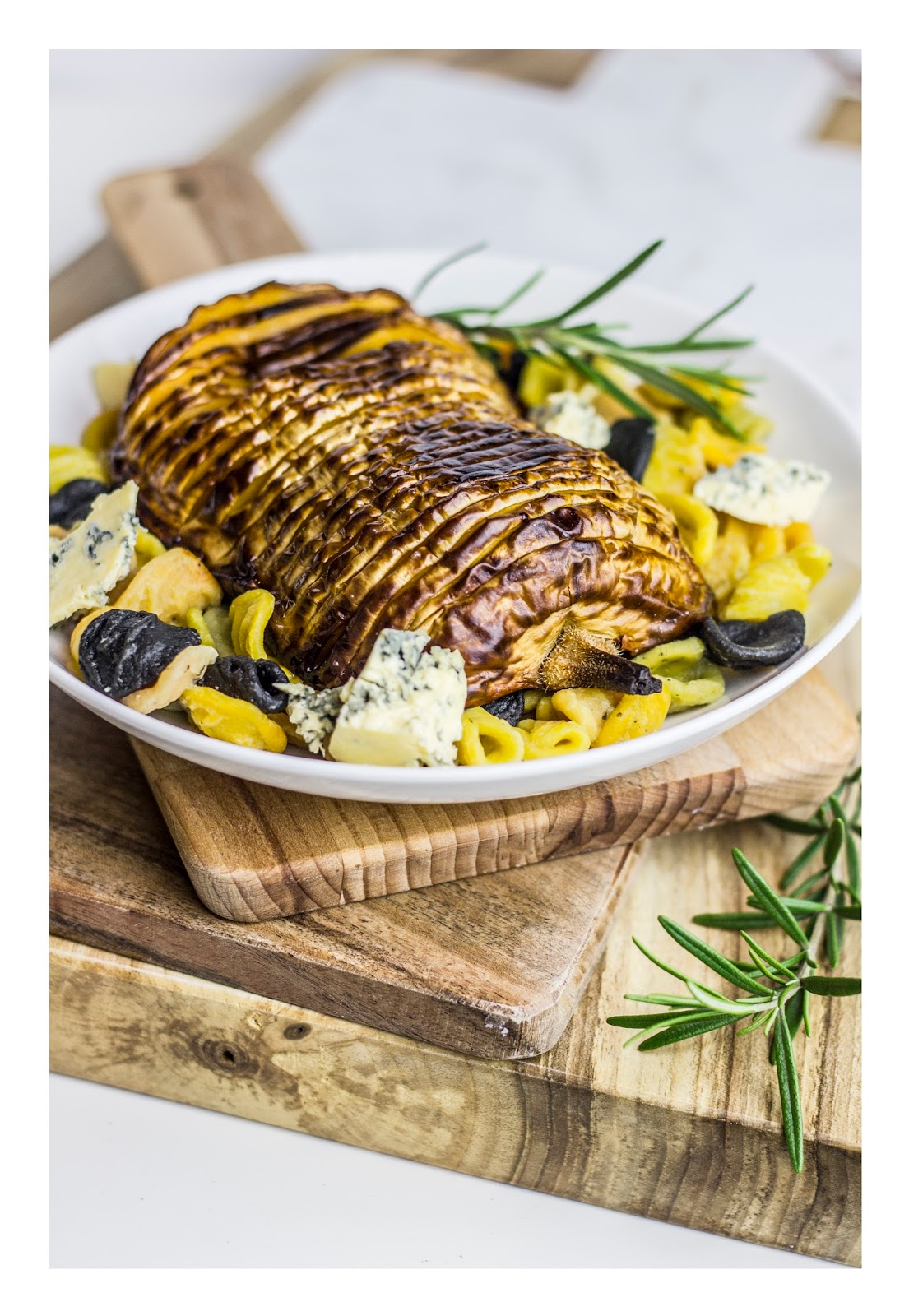 Ten przepis jest najłatwiejszy i najbardziej efektowny na świecie. Dynia karmelizuje się w piekarniku, makaron chłonie maślany sos winny, gorgonzola roztapia się jak pojedyncze płatki śniegu, kiedy tylko dotkną czubka nosa. Wrzućcie wszystko na jeden półmisek i ustawcie go na środku stołu. Tam się spotkamy. Po prostu.