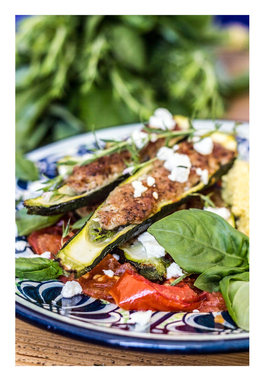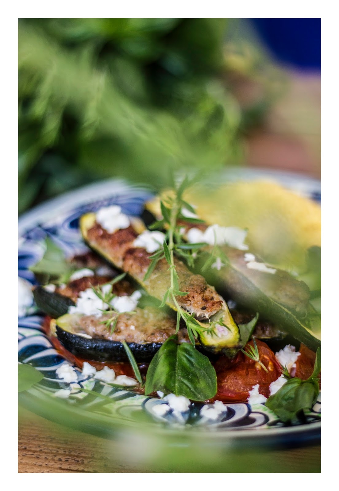 1. Cukinie kroimy nożem #MyVictorinox wzdłuż na połówki, pieczemy w 200 stopniach przez ok. 40 minut.
