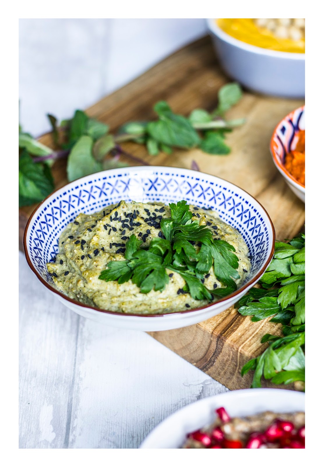 3. Miksujemy na dość gładką masę, doprawiamy harissą, kuminem, oliwą i solą oraz w razie potrzeby sokiem z cytryny.